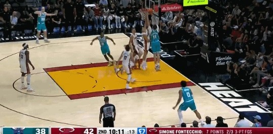 Deduct it if you can! The No. 34 pick of the Hornets, Kalkbrenner, eats pie and dunks + dunks over Fontecchio!